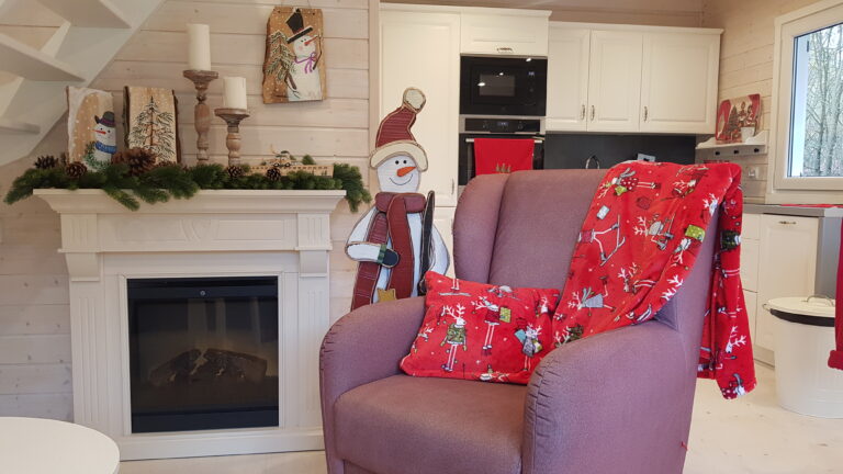 W domku sprzęt i wyposażenie dla gości gwarantujące wyczekiwany wypoczynek i komfort. Na wyposażeniu stylowy i bezpieczny kominek elektryczny, telewizor, pralka, zmywarka, kuchenka mikrofalowa, płyta indukcyjna, piekarnik, lodówka, odkurzacz i czajnik oraz niezbędne udogodnienia w kuchni włączając. sztućce i naczynia. Domek ocieplony i ogrzewany. Na tarasie komplet wypoczynkowy.